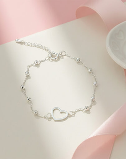PULSERA CORAZON CALADO CON BOLITAS PLATA