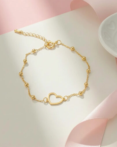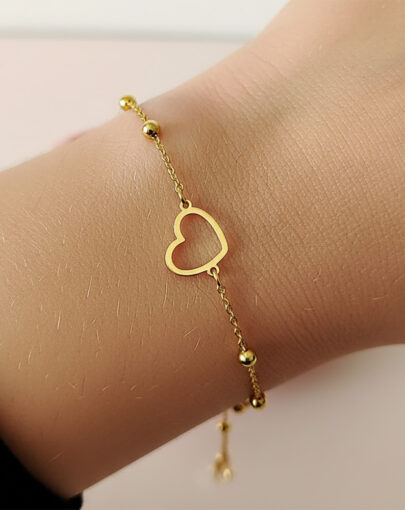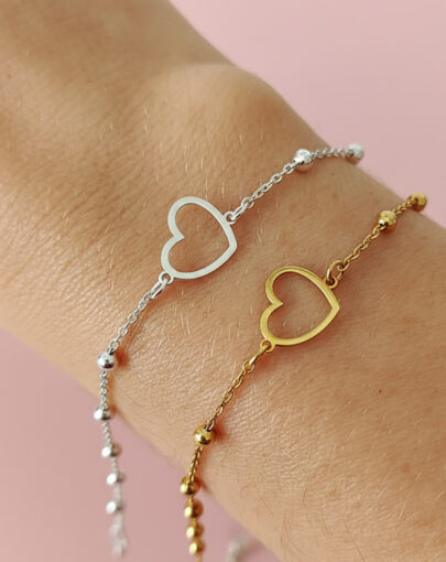 PULSERA CORAZON CALADO CON BOLITAS PLATA CON ENCHAPE DE ORO