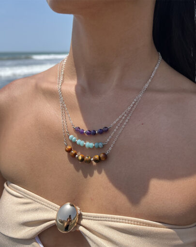 CADENA PIEDRA NATURALES PLATA